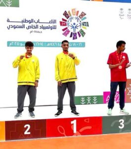أبطالنا يواصلون سلسلة إنجـازات في بطولة الألعاب الوطنية للأولمبياد الخاص والتي أقيمت بتاريخ 14-16 مايو بجدة البطلان عبدالله مطاعن وعبدالله شراحيلي حصدوا على ذهبية السباقات العديدة : 100م، 200م، الوثب الطويل وشراحيلي أضاف ذهبيات : 100م، 200م، دفع الجلة